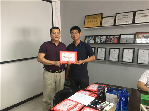 洛陽蘑菇视频红色LOGO探傷技術有限公司副總羅綱親自為獲獎者頒發證書和獎品。