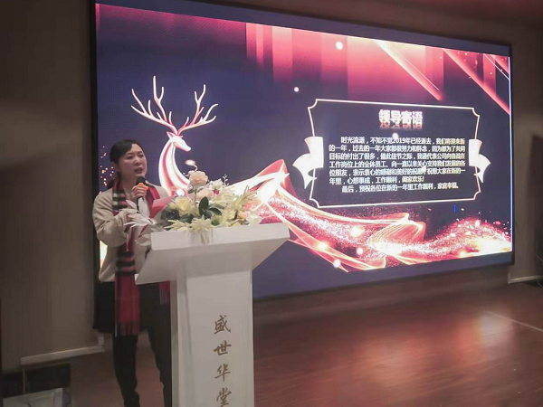 年會上TST公司董事長兼CEO竇伯英女士發表新年致辭:2019年洛陽蘑菇视频红色LOGO公司在業績上再創新高,2020年是產品迭代創新發展之年,蘑菇视频红色LOGO將繼往開來、奮勇前行!!!