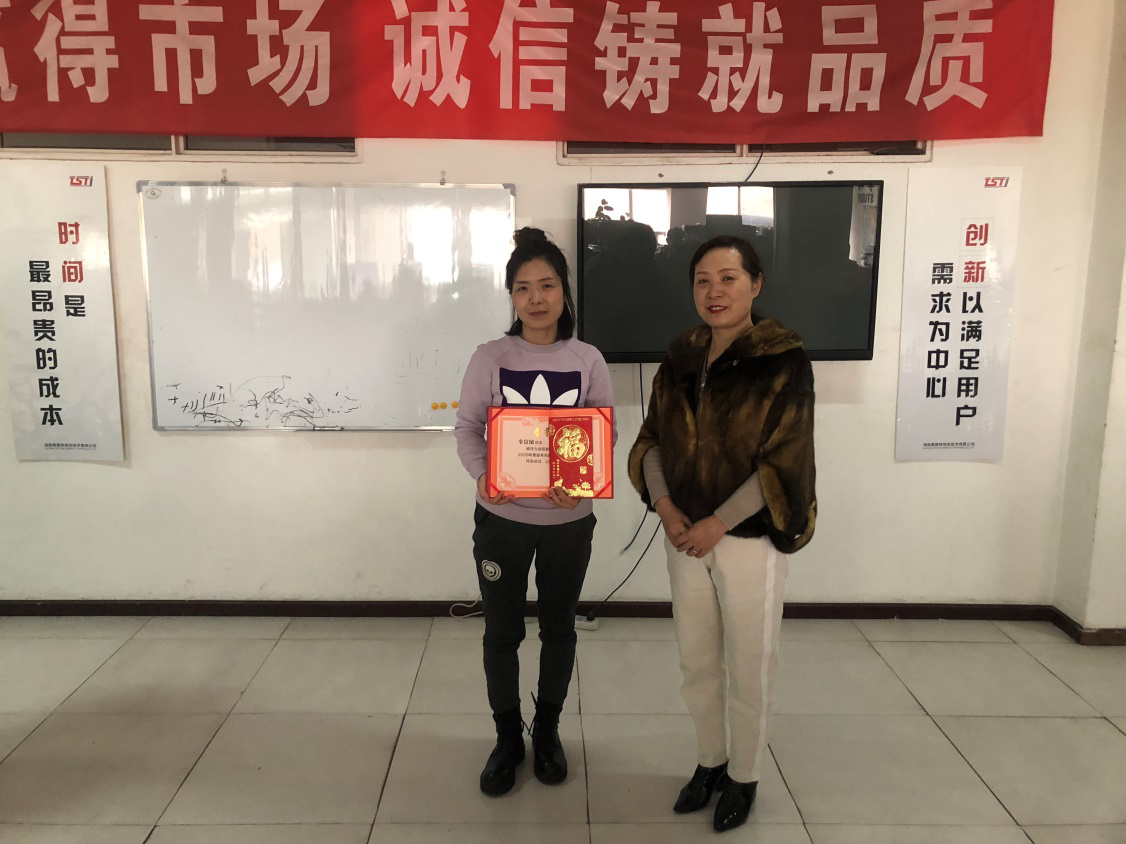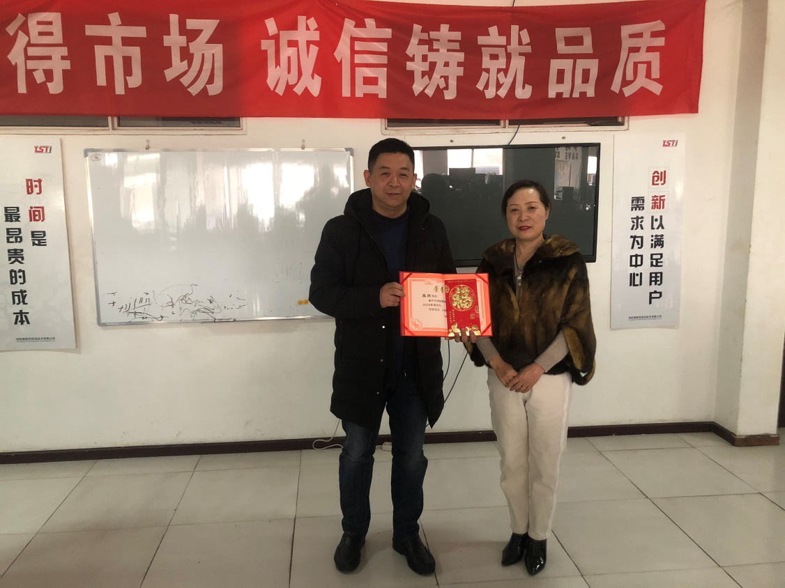 比貢獻,比擔當,在2020年中,為TST做出突出貢獻的員工接受了洛陽蘑菇视频红色LOGO公司董事長兼CEO竇伯英頒發的榮譽證書及獎金,這不僅是對優秀團隊及先進員工這一年辛勤工作的嘉獎,也是對其他員工的激勵。