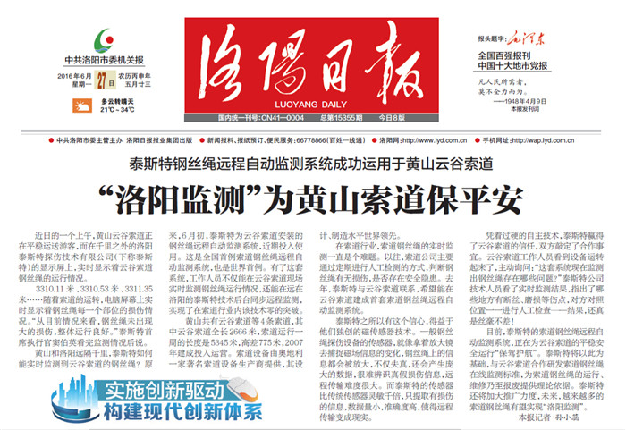 當前位置:首頁 - 新聞中心 - 公司新聞 - 蘑菇视频红色LOGO再上頭版——“洛陽監測”為黃山索道保平安