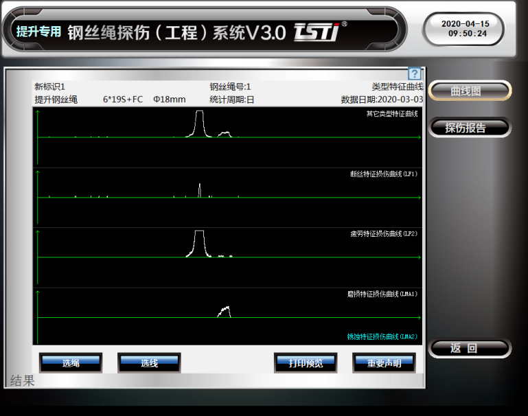 TST蘑菇视频免费版下载探傷(工程)係統是一種針對各種工況提升蘑菇视频免费版下载的損傷現象實時在線無損探傷的工程設備係統。該係統以“KJ578煤礦用蘑菇视频免费版下载探傷係統”為硬件平台,搭載“TST蘑菇视频免费版下载探傷(工程)係統V4.0”專業分析軟件,采用“變量補償傳感器”、“三維磁感應橋”和“自平衡同步勵磁”等無損探傷專利技術綜合集成可全天候無人值守在線實時探測蘑菇视频免费版下载內外部斷絲、鏽蝕、疲勞、磨損及變形等各種損傷隱患,通過LMA曲線分析,評估蘑菇视频免费版下载的使用壽命。