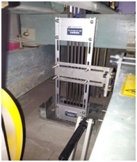 根據現場工況條件,經充分技術評估曳引輪部位上安裝套探傷前置裝置來檢測蘑菇视频免费版下载;對蘑菇视频免费版下载實施非接觸式在線實時探測,不影響蘑菇视频免费版下载自身的正常生產運行;整體結構設計為隨動形式,工作過程中可跟隨蘑菇视频免费版下载排繩運動和蘑菇视频免费版下载的抖動、跳動;整體可旋轉,在設備檢修期間(如蘑菇视频免费版下载換繩、夾持輪維護)可將前置探傷裝置旋離蘑菇视频免费版下载,檢修完畢後重新上線檢測。